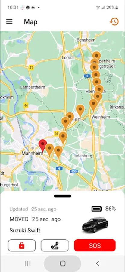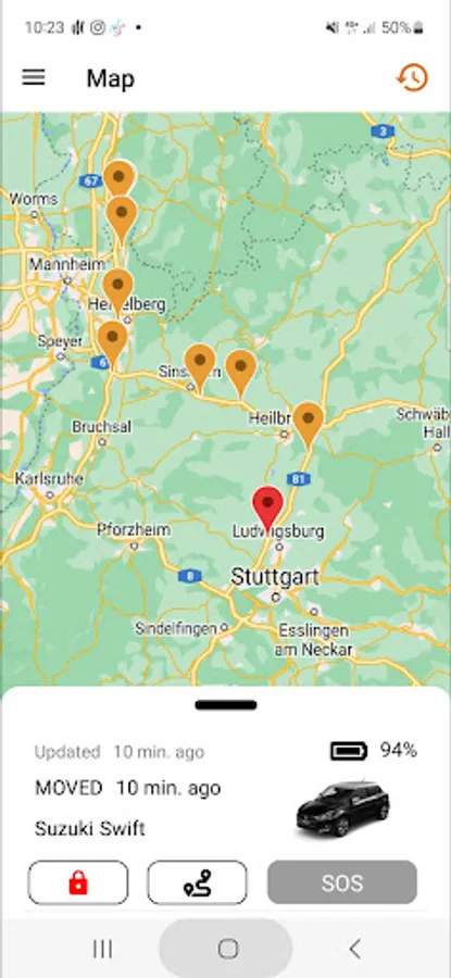 Other functions in the app, such as Carfinder, History and Movement Log provide information about current and last locations of your vehicle, as well as exact time information about the movement sequences. The current battery level shows you when you should charge your GPS tracker.