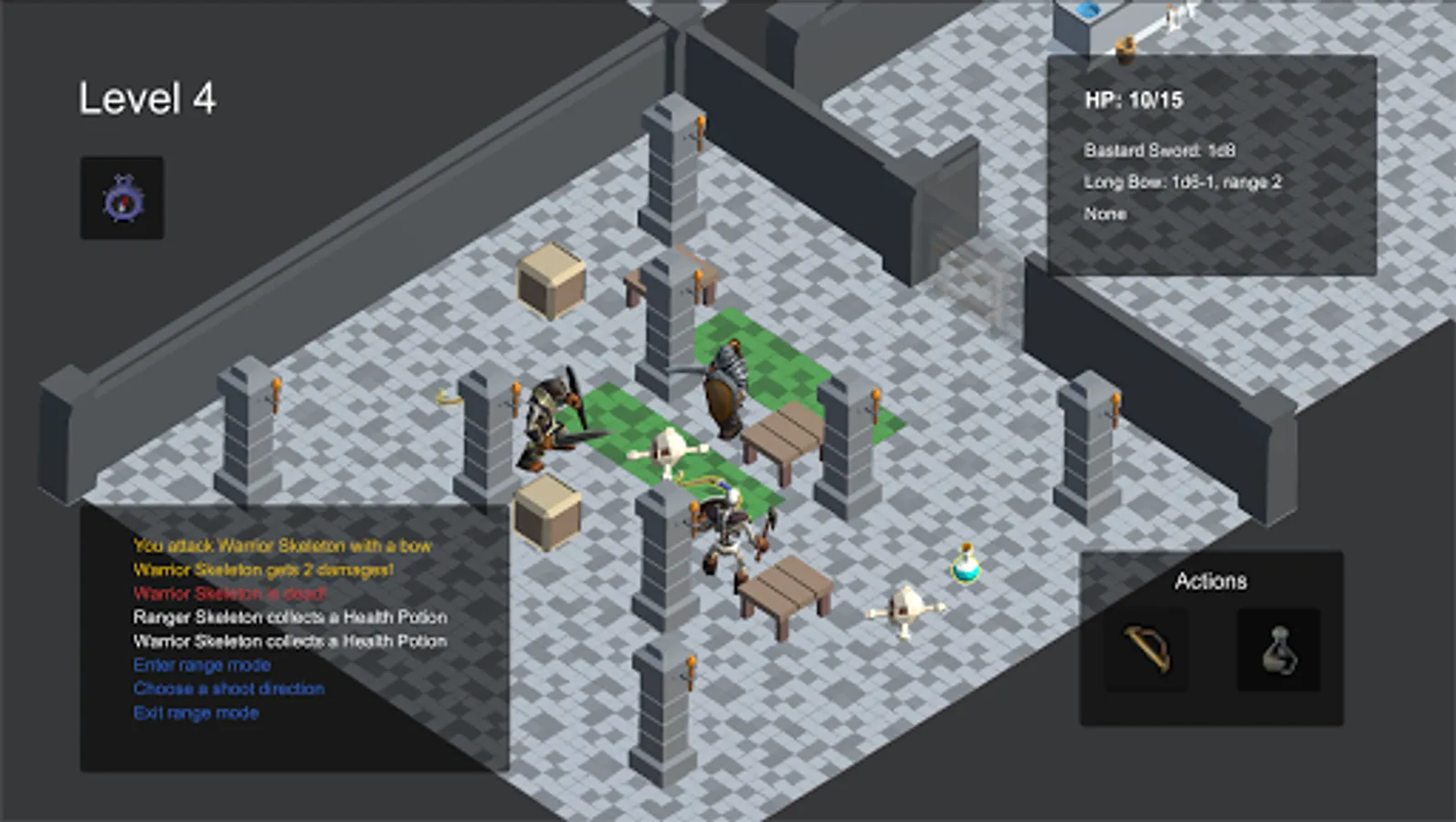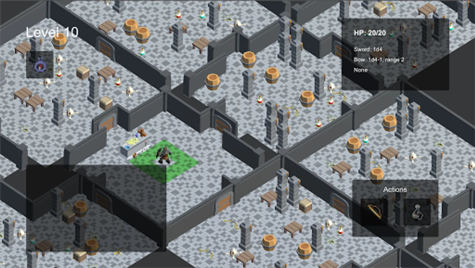 The game is designed to be hard, yet fair: you'll have to explore the dungeons and defeat all the guardians of the rooms, paying attention to every moves the AI does!