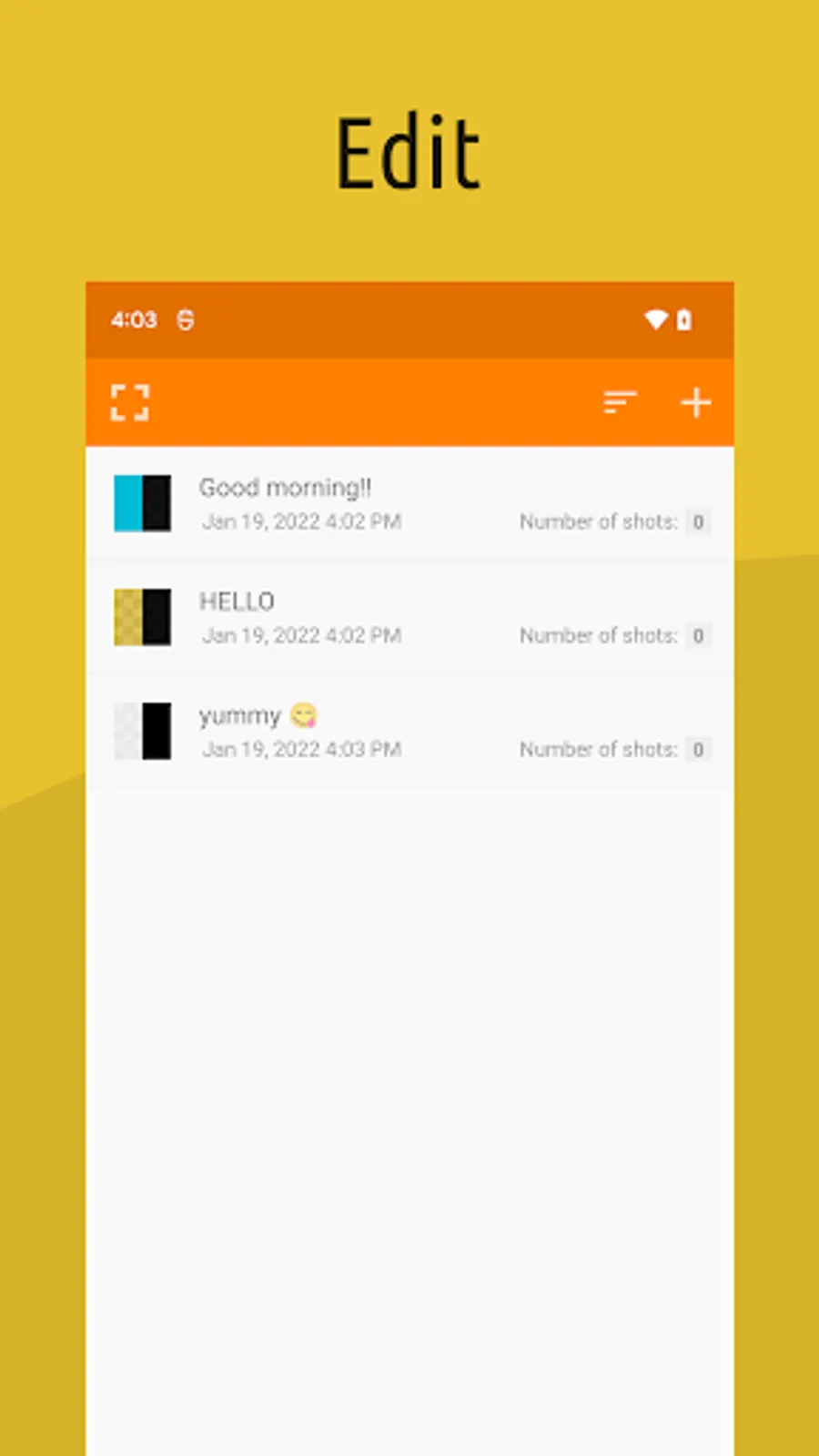 01. When you open the application, an empty list is displayed, so press "+" button at the top right.
