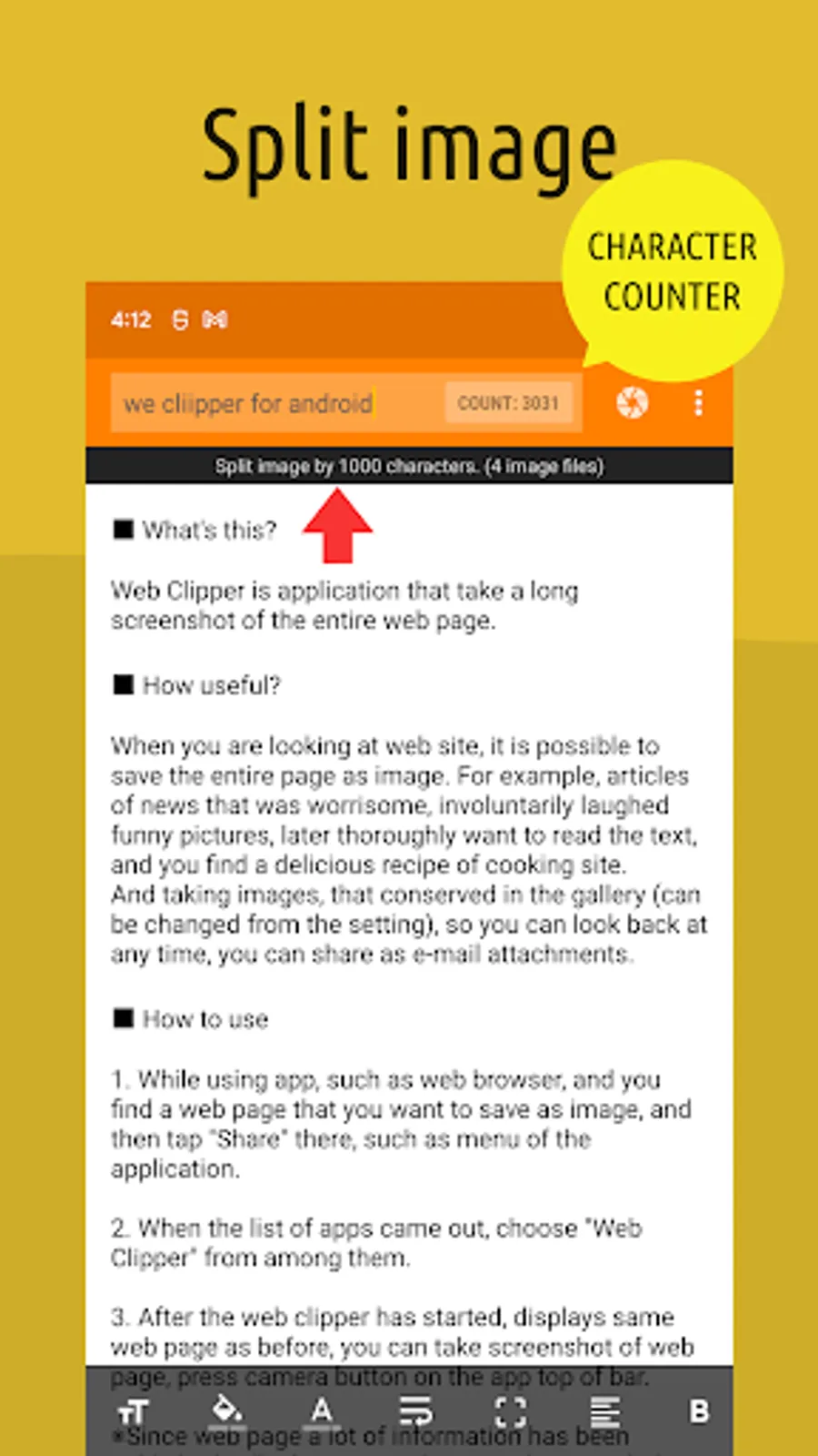 03. [Option] At the bottom of editing screen, there is a tool bar for changing size of text and changing color, etc...