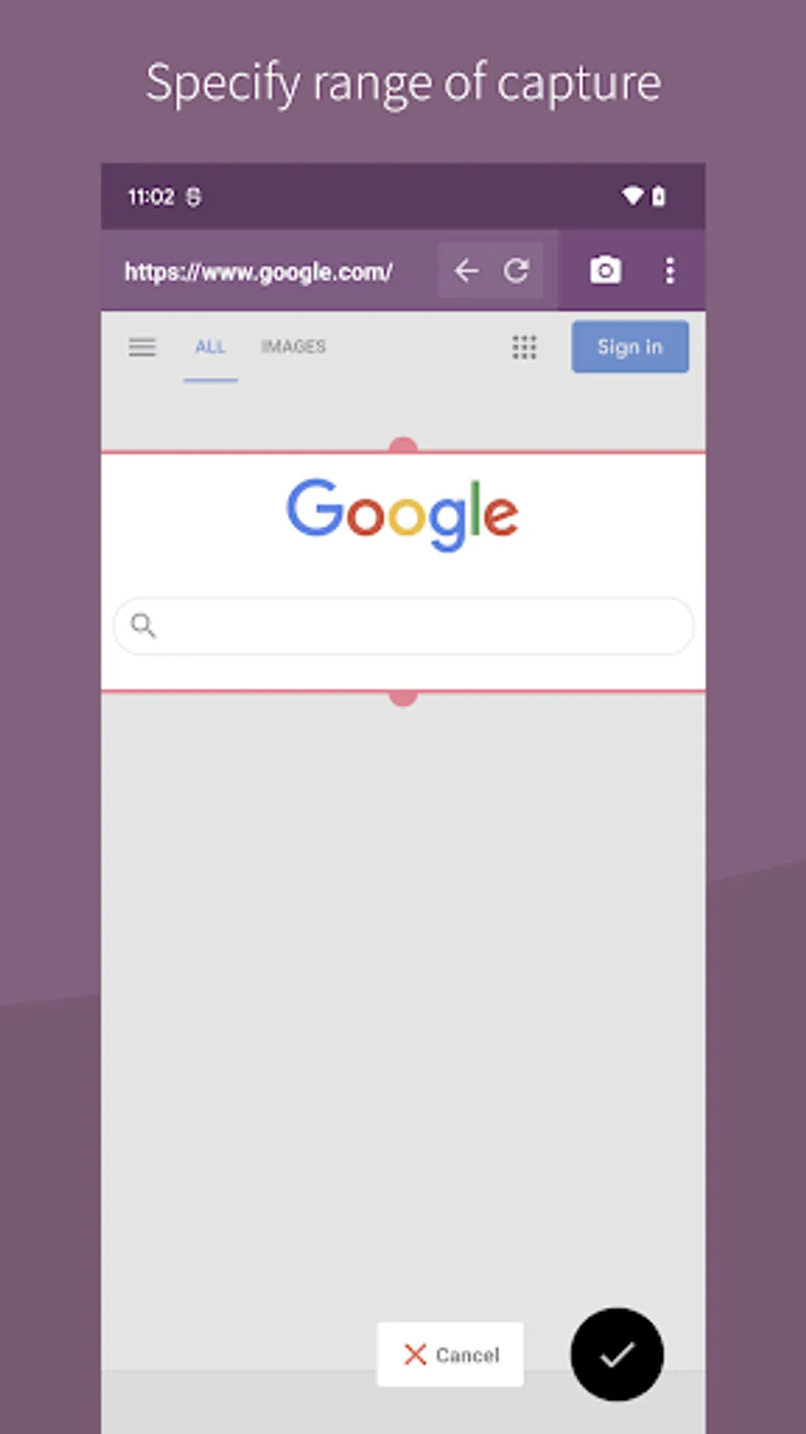 - From version 1.2, we set an upper limit for taking long screenshots. (Portrait: 42000px, Landscape: 30000px)→If it is longer then this, it will be cut automatically.