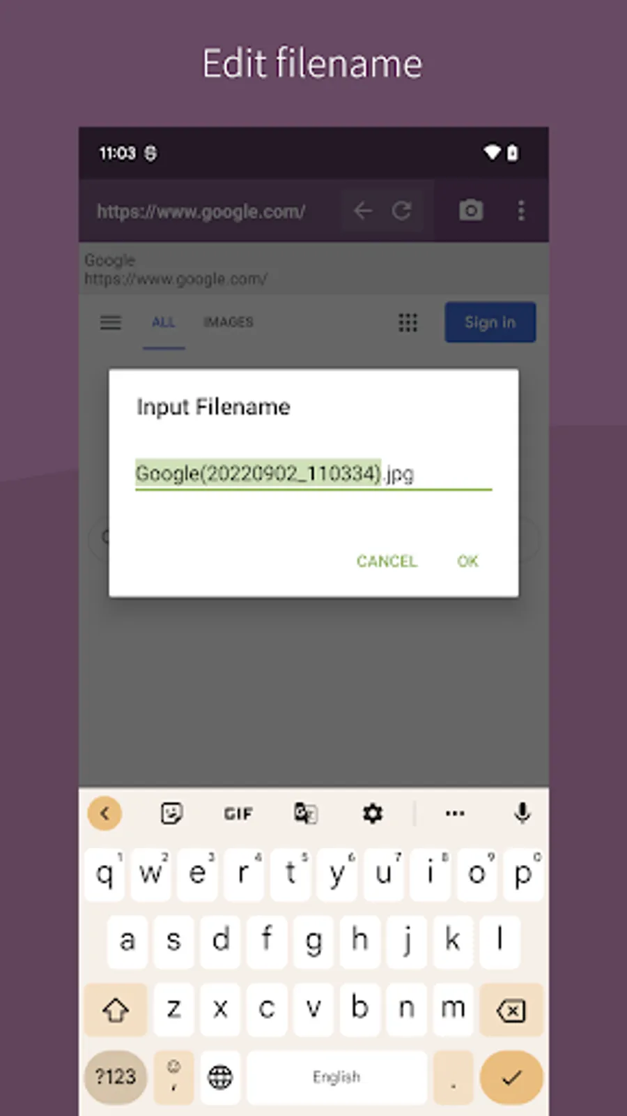 → If you choose to edit, when you tap the app of camera button, a pop-up to enter the file name will be displayed.