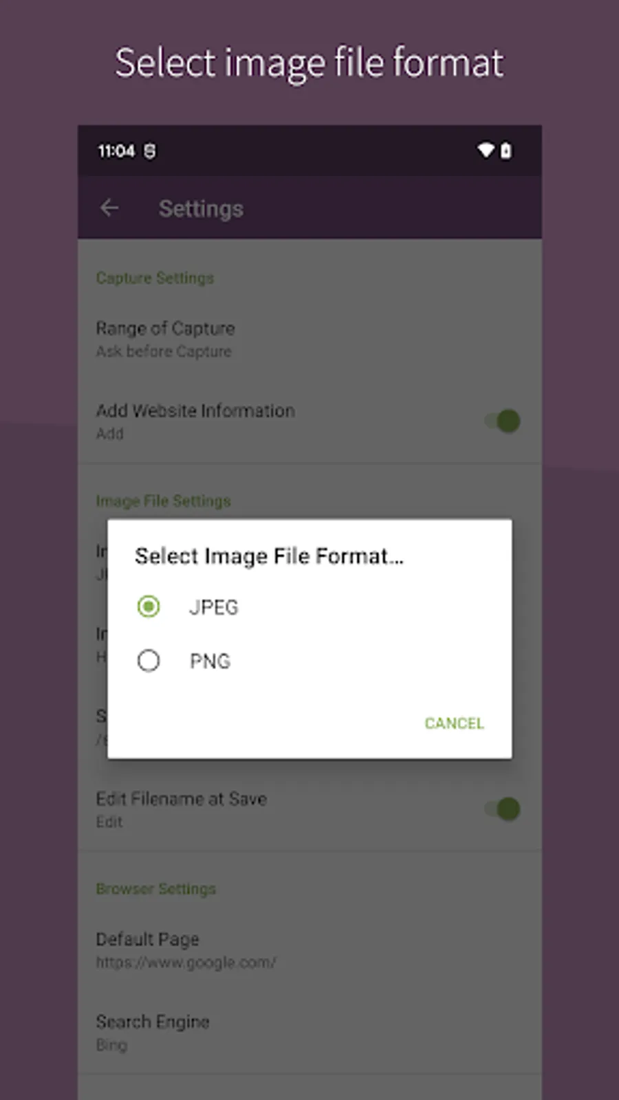 → Select the PNG format if you want to save in no deterioration of image. Select JPEG if you want to set the image quality.