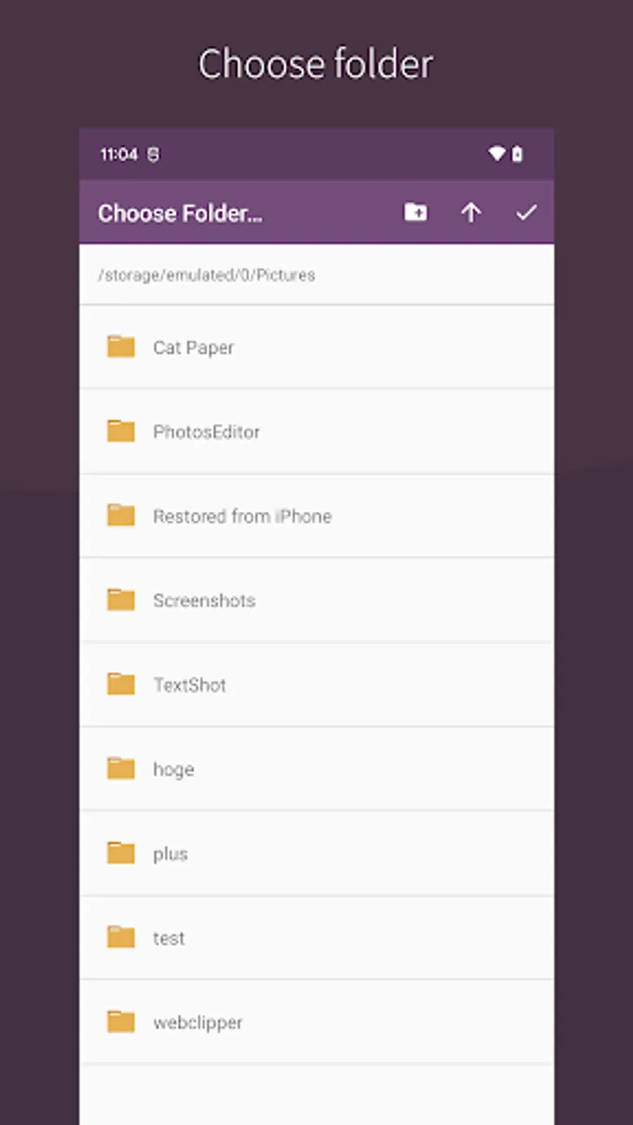 From version 1.2, it is possible to select only in the "Pictures" folder.