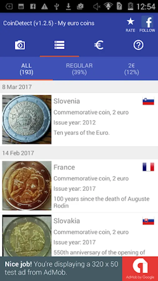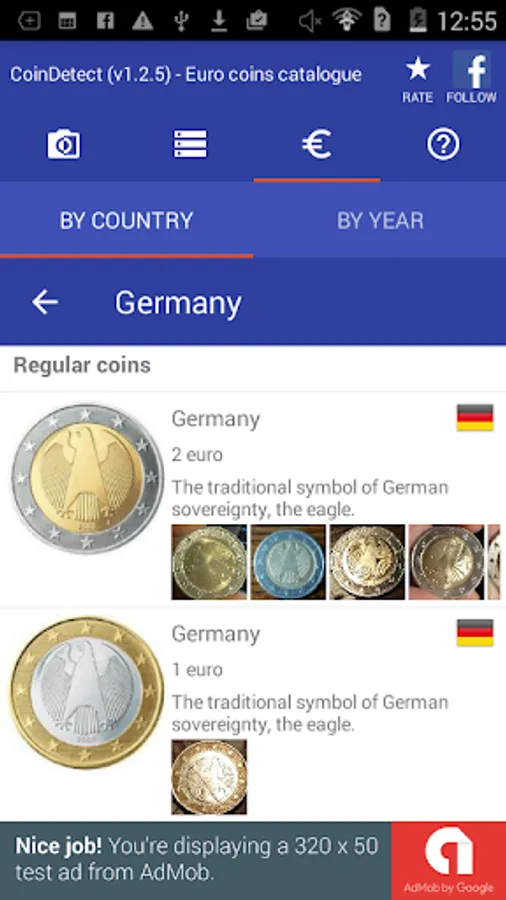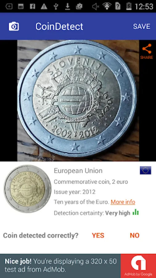 CoinDetect makes euro coin recognition easy - just snap a picture of a euro coin with your phone camera and the app will tell you the country of origin, the year of issue and other information about the coin. Must have tool for every coin collector and numismatist!