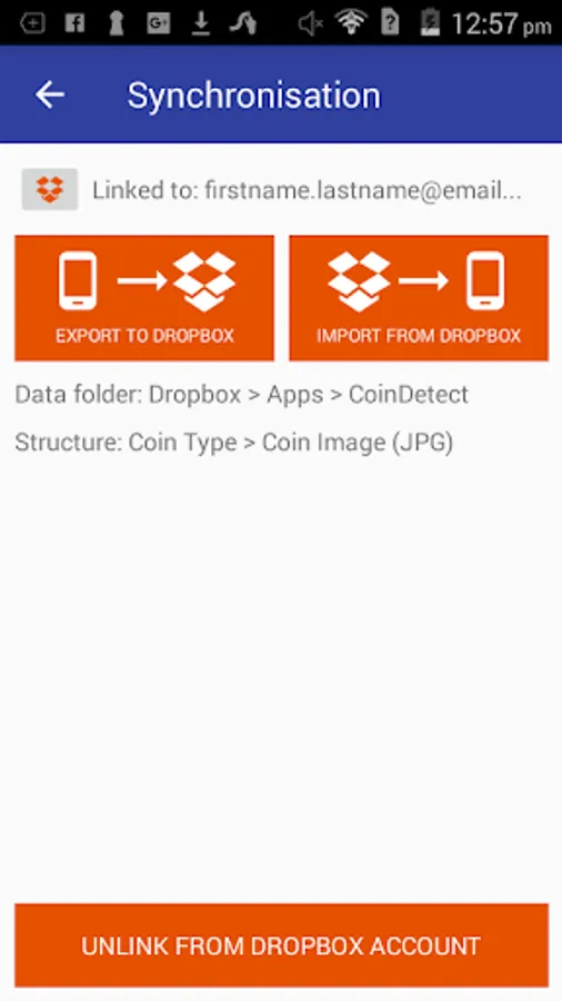 - Collection data synchronisation with Dropbox (for backups and moving data between devices)