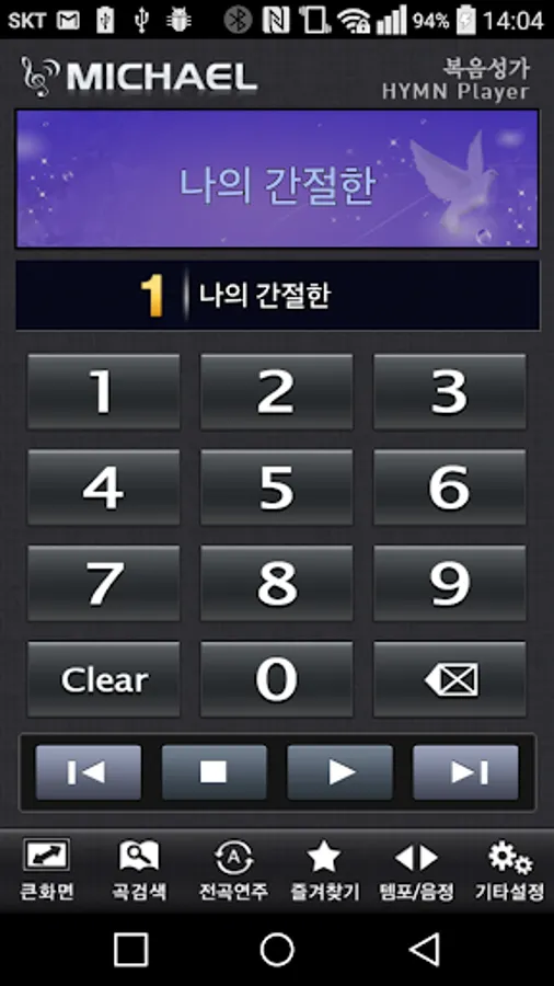 - If you select a hymn using the number buttons (0~9), you can find it immediately.