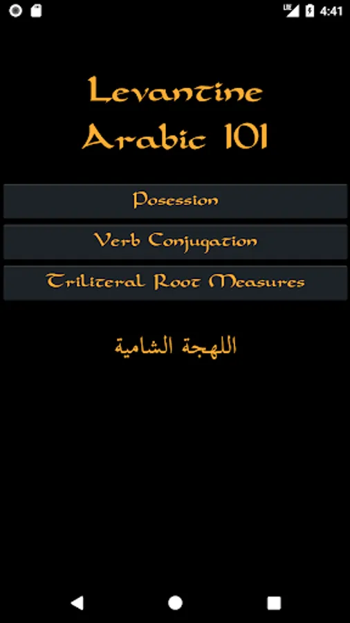 This app collects the patterns of the Levantine Arabic dialect and presents them in a simple and easy to understand format. New language learners will be able to understand how verbs are conjugated, how to make nouns possessive, and even learn the different measures of the trilateral verbs.