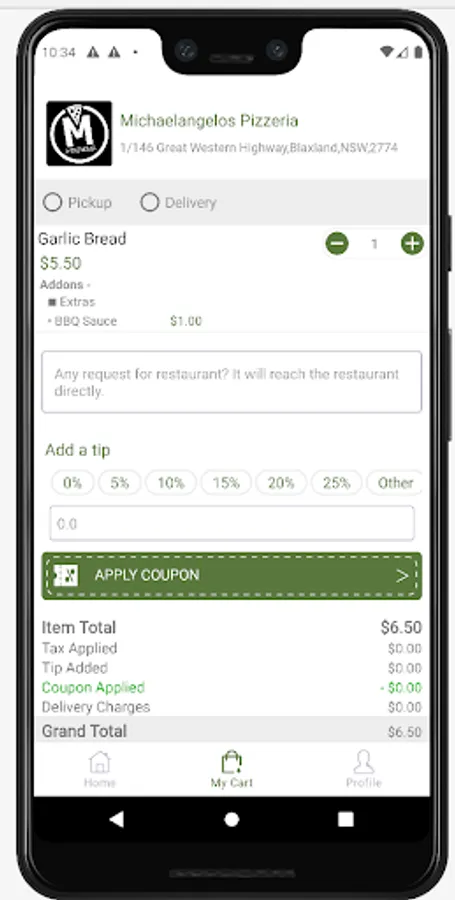 1. Get the Michaelangelos Pizzeria Online Ordering app and conveniently order from anywhere on your Android phone and tablet.