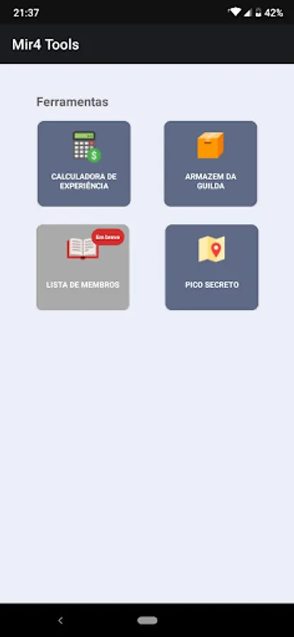This application will offer several tools that help in the gameplay of Mir4. Tools such as: Experience calculator, resources to create items, clan member management, claim, among others.
