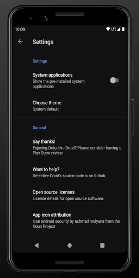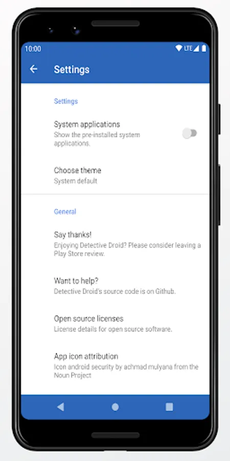 Detective Droid requires no permissions and works on Android API 21 (Android 5.0 Lollipop) and newer.