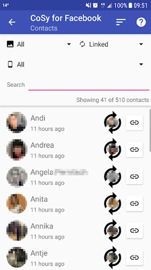 CoSy - Contact Sync for Facebook syncs your facebook friends profile images with your local phone contact images.