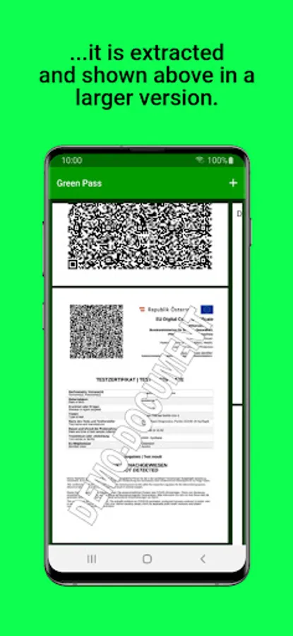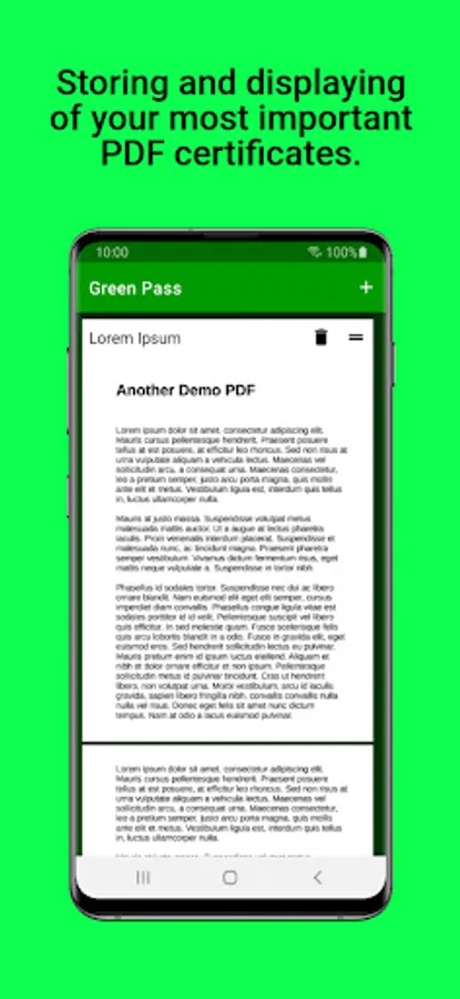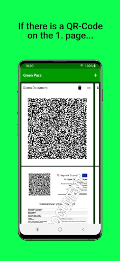Very simple app, that does nothing more than conveniently storing and displaying PDF certificates. Naming "Green Pass": In some European countries, the Green Pass is a PDF document with QR code (EU Digital Certificate) that can be downloaded from the local authorities. Since this app follows a universal approach, other PDF certificates work as well though.