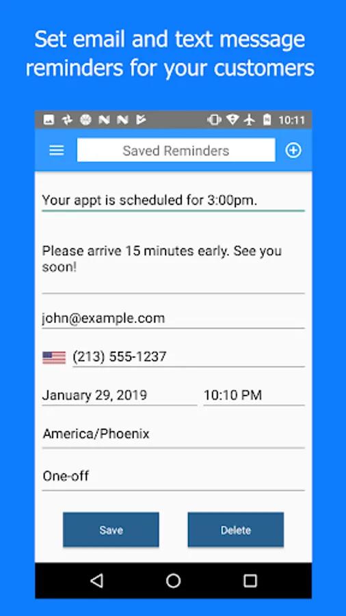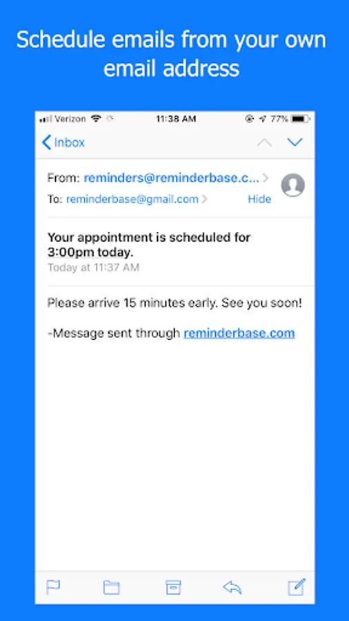 Reminderbase is an easy-to-use application that allows you to send scheduled email and/or text message reminders to your customers and others!