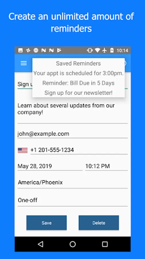 - Deliver reminders on a one-off, daily, weekly, biweekly, monthly, or yearly basis