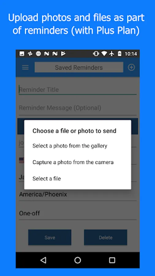 - Upload files or photos as attachments to reminders (with Plus Plan)