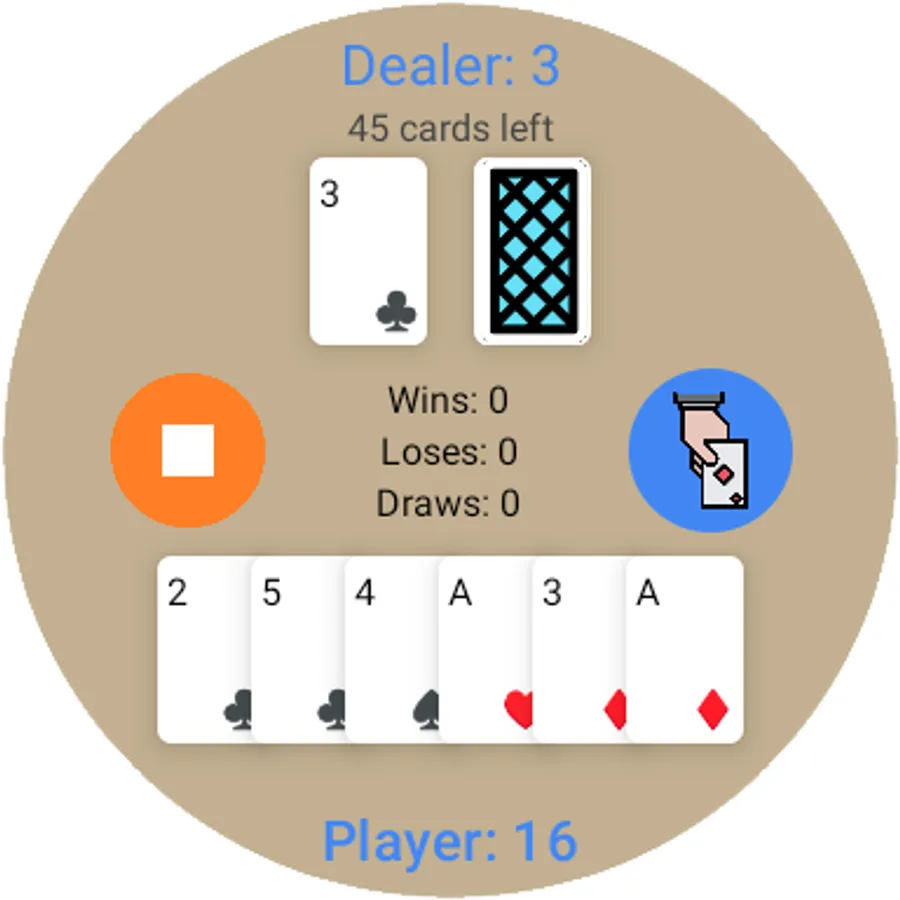 The object of the game is to win by creating card totals higher than those of the dealer's (computer's) hand but not exceeding 21, or by stopping at a total in the hope that the dealer will bust.