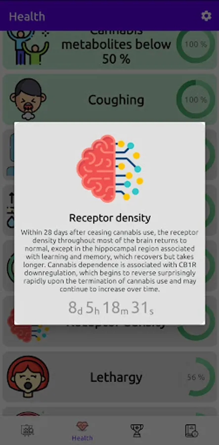 🧬 THC Avoided: For a more detailed view, input the potency of your weed, dabs, or vape liquid to see the total THC you've kept out of your system.