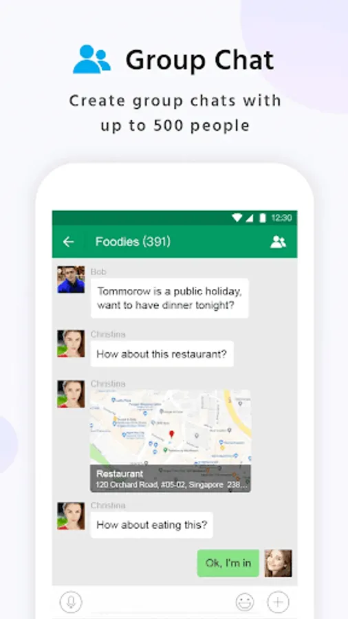 Create group chats with up to 500 people. Stay in touch easily with your friends or family.
