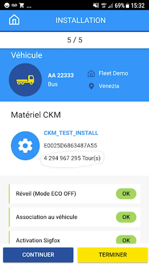 Application Michelin destinée aux centres de service provider pour l'appairage des compteurs kilométriques (CKM).