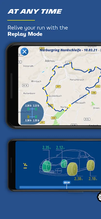 - After the run, the collected data allows you to analyse and relive your driving session. Thanks to the application, your phone become a digital manometer to take full advantage of personalized pressure advice. You will then be able to get back on the track in the best possible conditions.