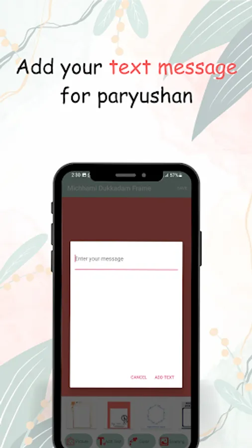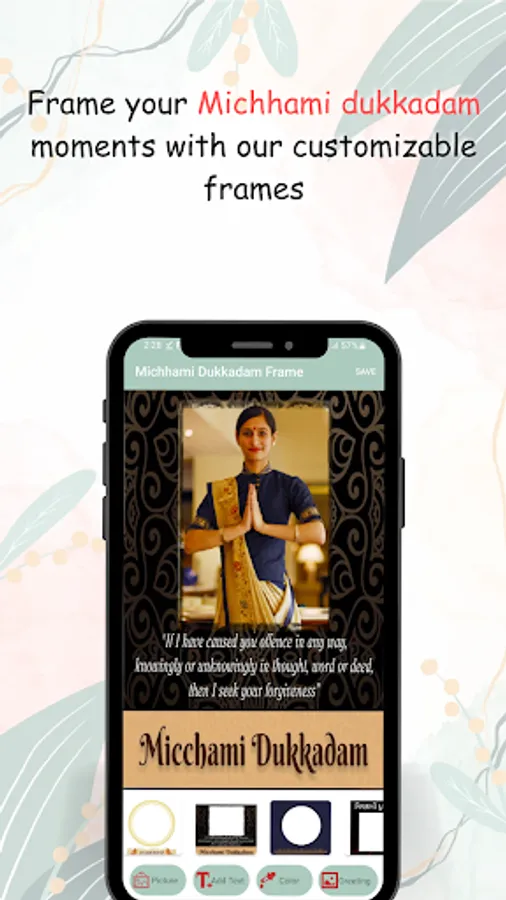In Michhami dukkadam frame app, you can set micchami dukkadam frame on you photo and write message on photo. Then save it and share with you group one.