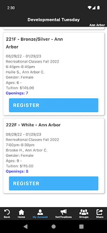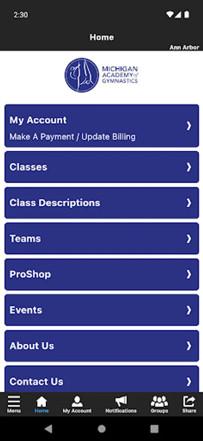 The Michigan Academy of Gymnastics app allows you to manage your account with ease, register for classes, parties, and special events. You'll also receive important notifications about class changes, closings, registration openings, special announcements, and upcoming events.