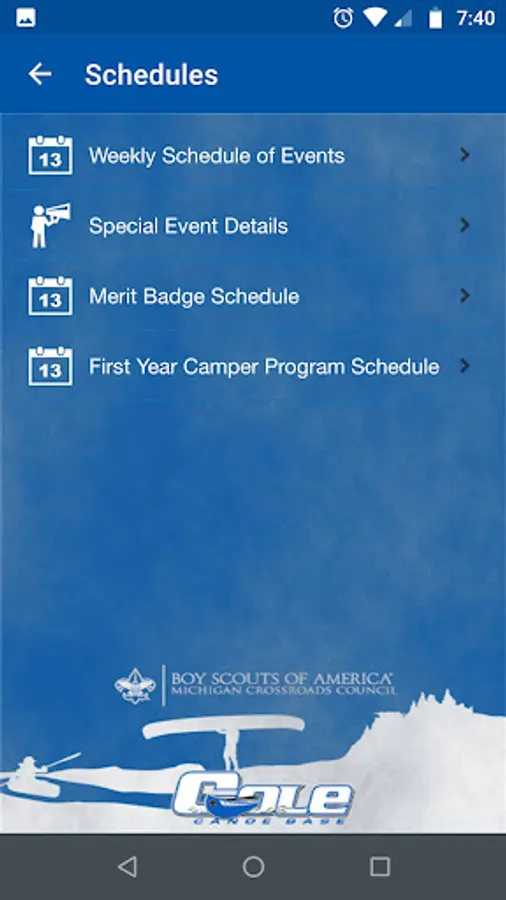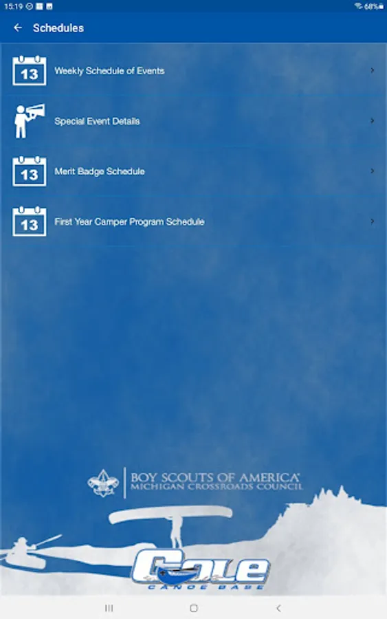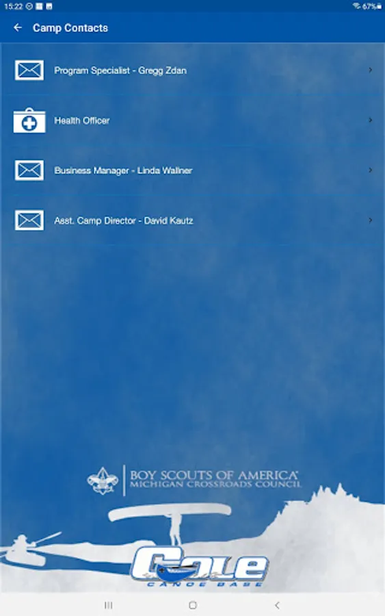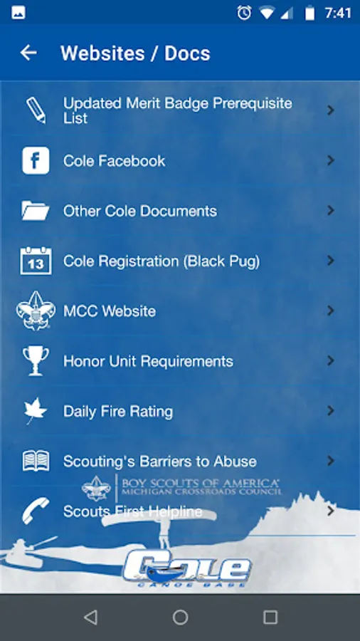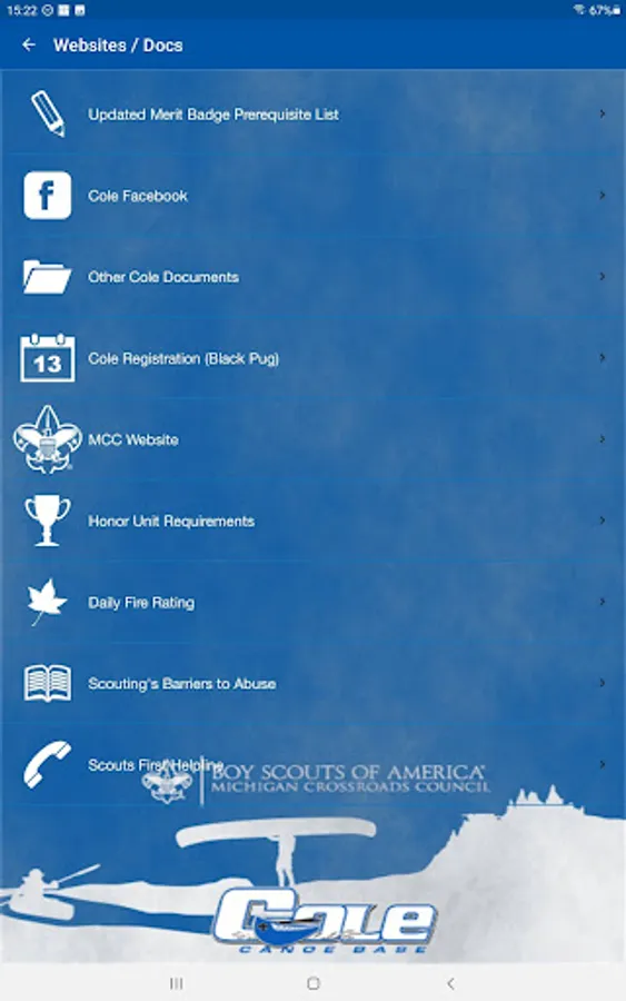 This Camp App is provided as a service to participants on site at our camp facilities. Designed as an additional method of communication to unit leaders, this App is a supplement, not a replacement, for the forms, webinars, and other sources of camp information. This App is not meant to replace direct communication with MCC staff when issues arise.