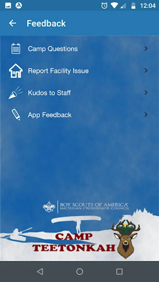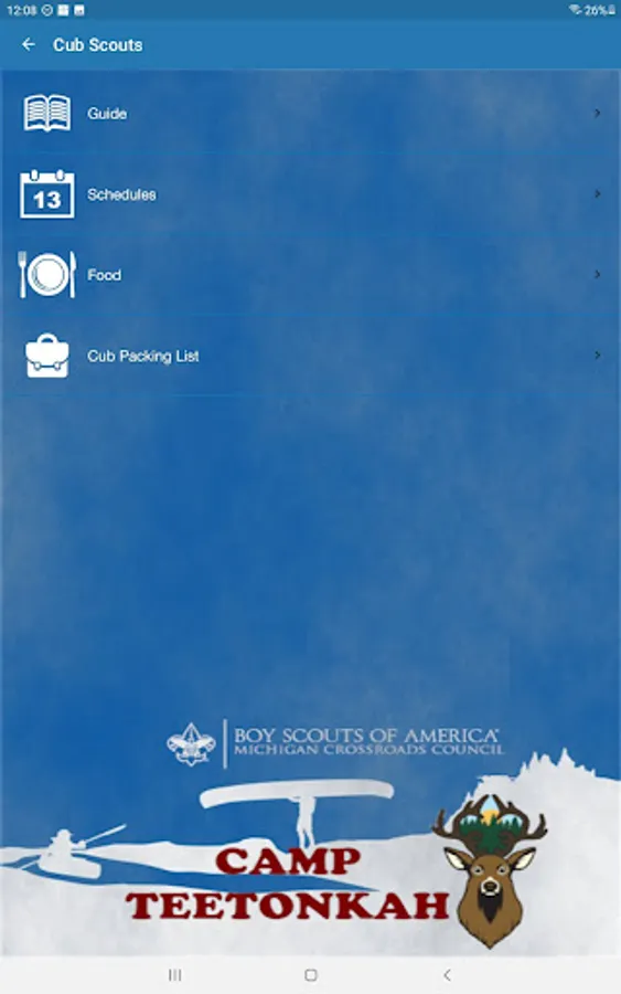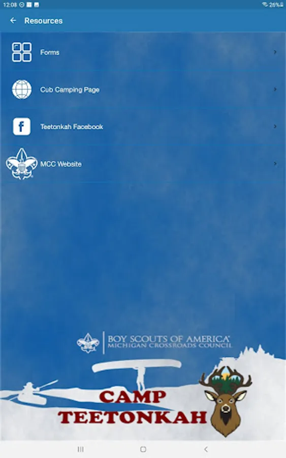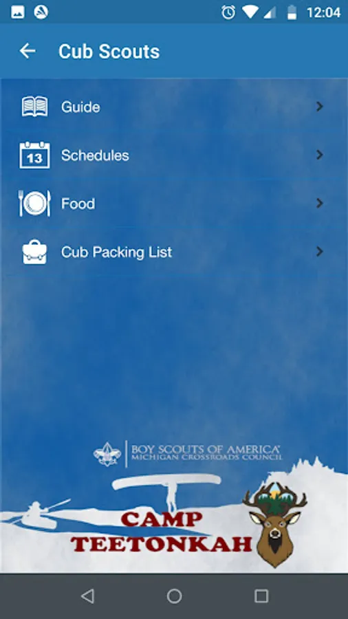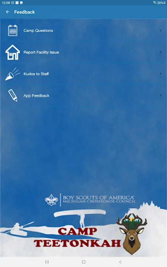 This Michigan Crossroads Council Camp App is provided as a service to participants on site at our camp facilities. Designed as an additional method of communication to unit leaders and parents at camp, this App is a supplement, not a replacement, for the forms, webinars, and other sources of camp information. This App is not meant to replace direct communication with MCC staff when issues arise.