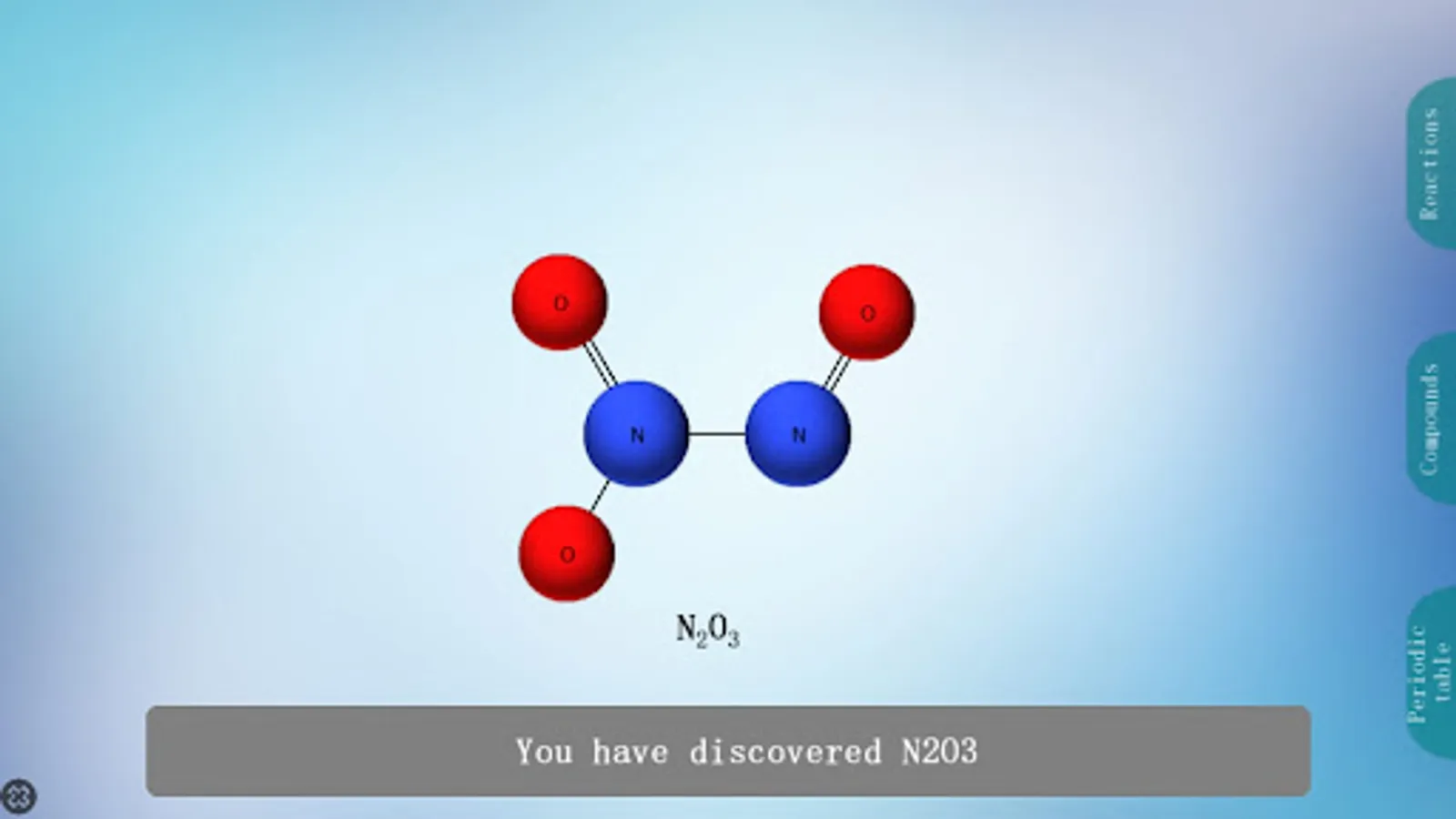 This is a simulator of chemical reactions. Here you can perform the chemical reactions that involve up to 70 different compounds, starting with diatomic molecules and including oxids, oxyacids, hydrides, hydracides, hydroxides and oxyacids composed with the first 20 elements in the periodic table.