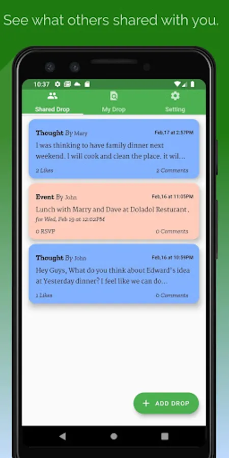 Your close friends who get your drop (note) can like your content, RVP the event you shared and write a comment.