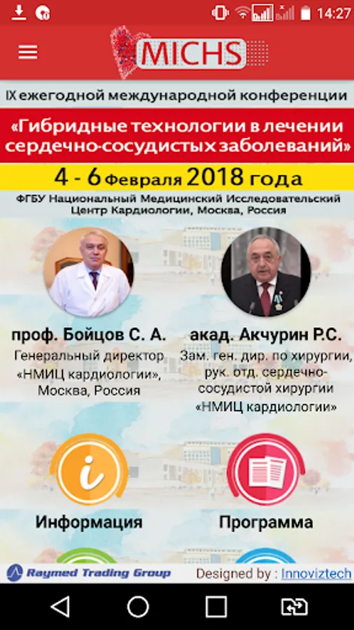 MICHS-2018 - IX Annual International Conference "The hybrid technology in the treatment of cardiovascular disease", 4 - 6 February 2018 in the Federal State Organization "NATIONAL MEDICAL RESEARCH CENTER OF CARDIOLOGY" of the Russian Federation Ministry of Health, Moscow, Russian Federation.