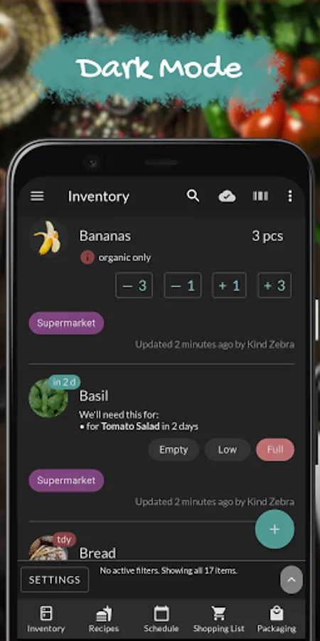 🛒 Download and use the app for free, as long as you use it for yourself only. Sharing and synchronizing your inventory, recipes, shopping list etc. with friends and family is a paid feature.