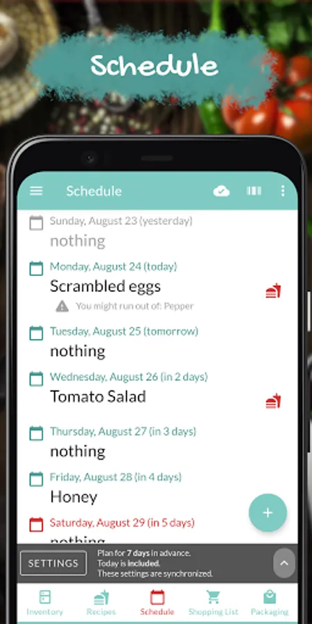 ✓ Schedule your recipes - plan what you'll cook in advance.