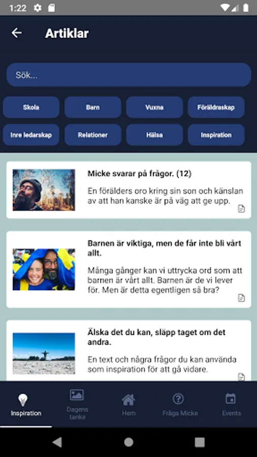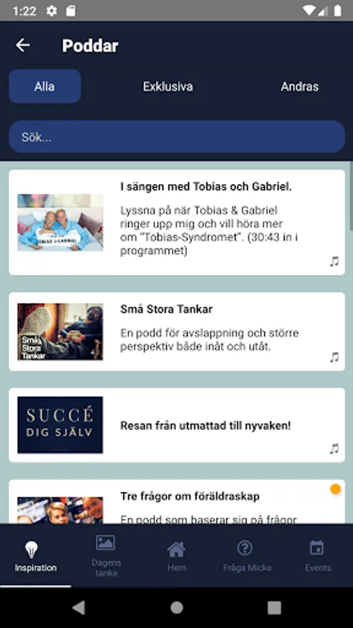 In the app you can take part in Micke's own podcasts. These are about everything from parenting to inner leadership.