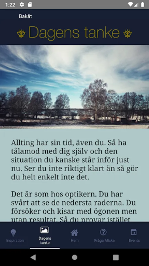Every day you get a unique text and a picture that can help you on your own journey. Maybe it's a question for you to think about or a thought from Micke.