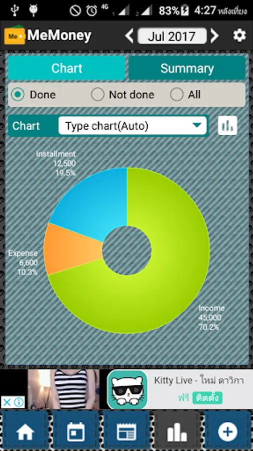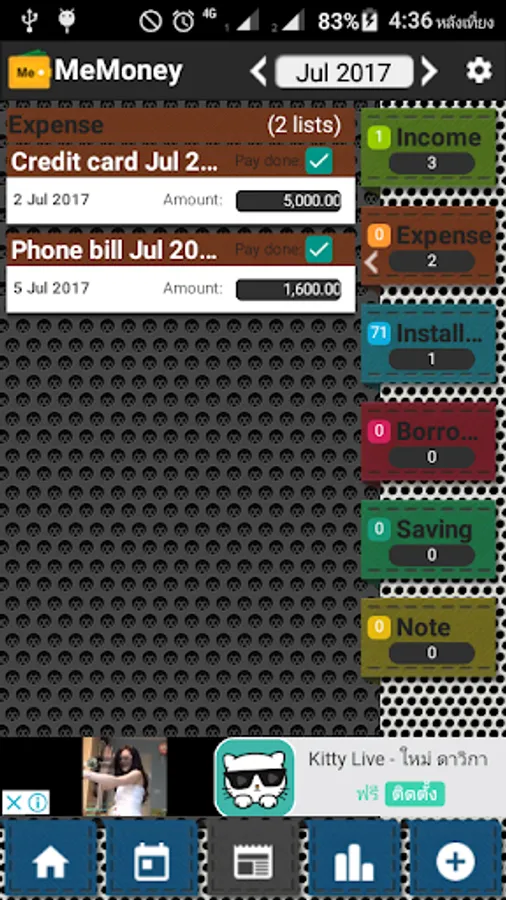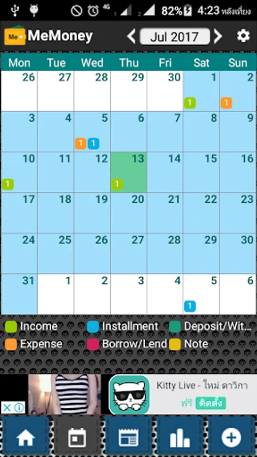 MeMoney is an application for managing your expenses. It allows you to spend more systematically. It also shows the statistics your spend each month. The main items are: income, expenses, installments, borrow, saving and a memo. Users can add categories by self. Having a calendar revenue - expenditure, listed of items by type, pay-as-you-go alert helps you keep up with your spending discipline.
