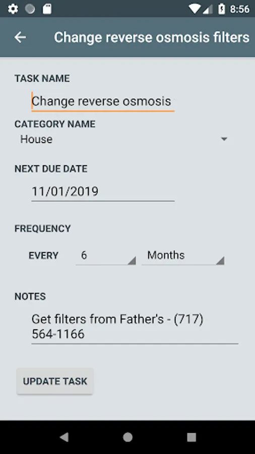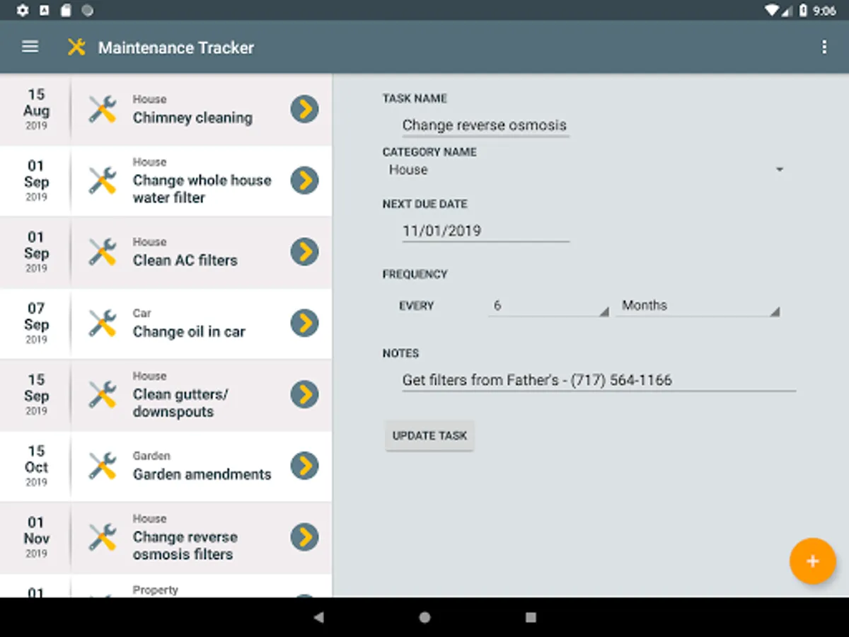Owning a house requires quite a bit of maintenance. This app helps you keep track of your regularly recurring house maintenance tasks.