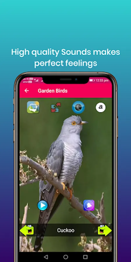 Bird sounds is an entertainment application for all users which helps to entertain and get a calm and quiet feeling. This bird sounds app includes more than 100 sounds of various bird. With this bird sounds for the users can easy entertain them self with easy navigation. Offering HD bird pictures and by a simple touch on images produces each sounds of bird respectively.