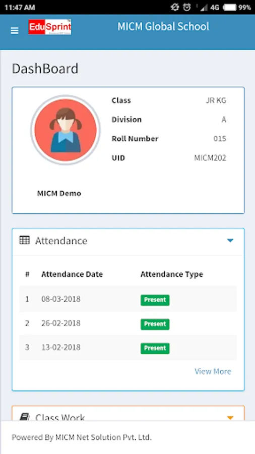 Note : Pleas ask your School to register with MICM Net Solution PVT LTD to get benefits of Edusprint+ App (App Credentials will provided by school authorities only)