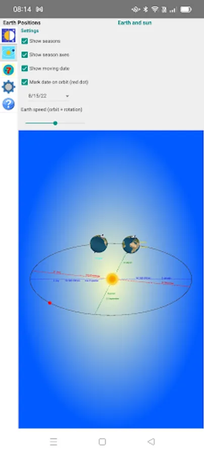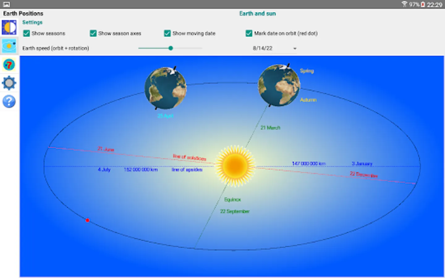 - Visualizes the Earth orbiting around the sun and shows the seasons.