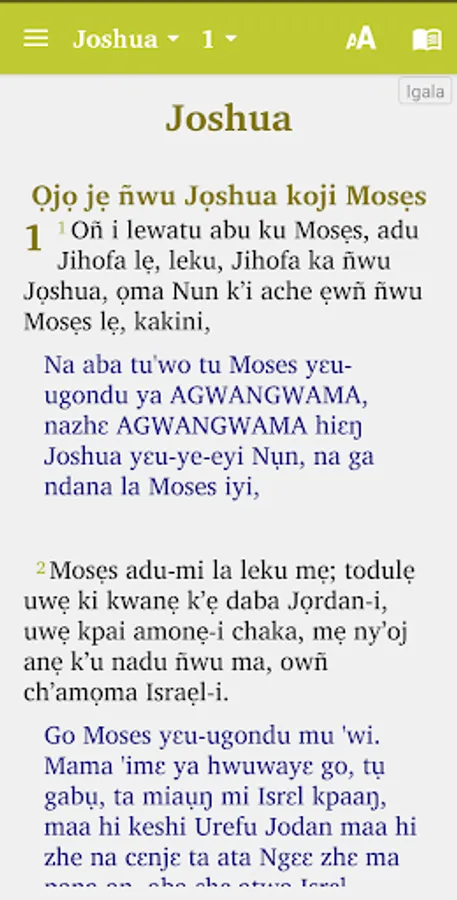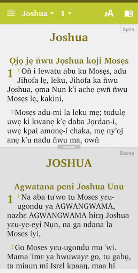 This is a combination of Otakada Ola Ojo and Utakada Tijilo (Bible in Igala language and Bible in Bassa language.