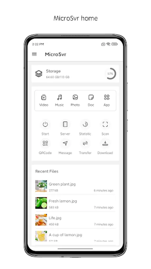 MicroSvr is a LAN cross-platform file management tool based on http protocol. Use personal mobile phones or tablets as a server in the local area network, and use the browsers of other computers, smart phones and other devices in the same local area network to browse mobile phone files, upload files, download files, play videos, browse pictures, transmit data, statistical files, and display Performance etc.