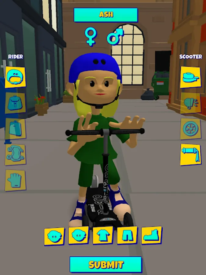 There's a new cool kid in town! Take control of your virtual scooter and explore the city. Gather coins and use them to unlock new accessories for you and for your ride! The more you ride, the more experience you gather which can be used to unlock new maps.