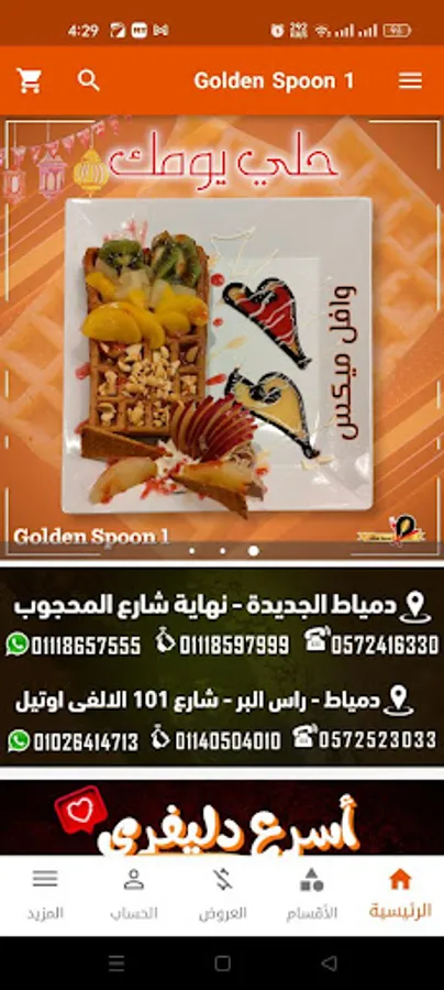 Download the Golden Spoon 1 application for food requests through this application in the areas of Damietta, New Damietta and Ras al-Bar and get unlimited discounts. By preparing Golden Spoon 1 application, you will order your meal easily and you will get the best experience to get the food you desire on the application made for you. .