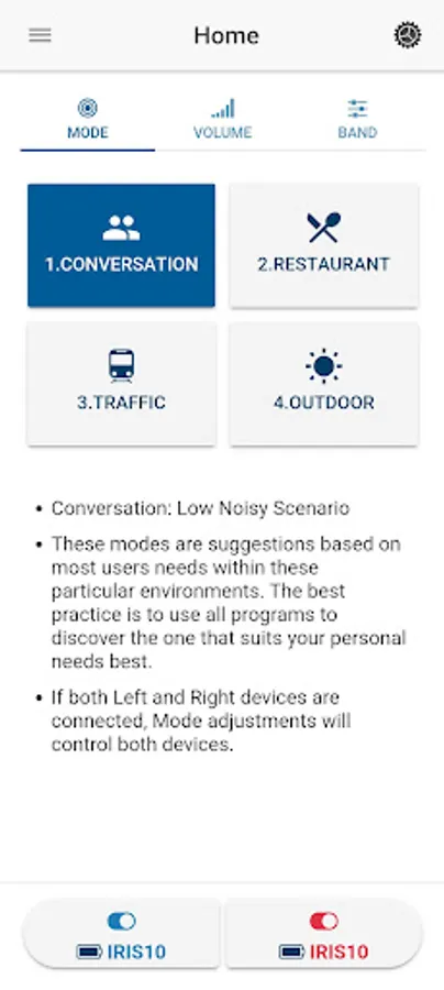 - Environment mode setting (All around, Restaurant, Traffic, Outdoor)