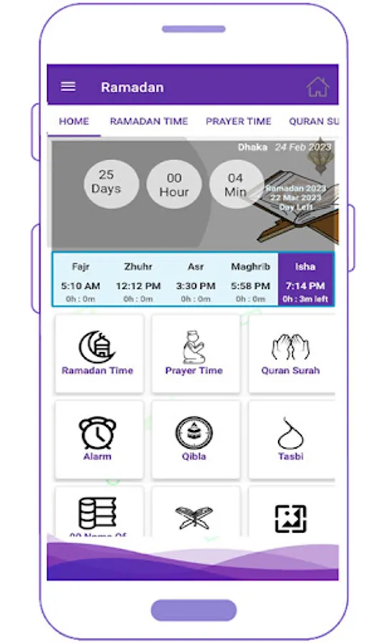 Ramadan 2023 App has been contained world wide Prayer time, alarm, Ramadan time schedule , 99 name of allaha, full Quran with audio, Quran surat,, Qibla direction, and Tasbi.