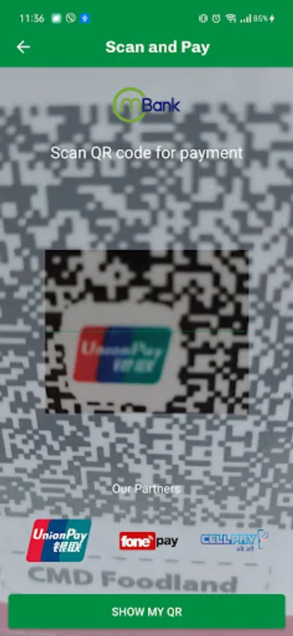 Scan and Pay feature that allows you to scan and pay to the different merchants.