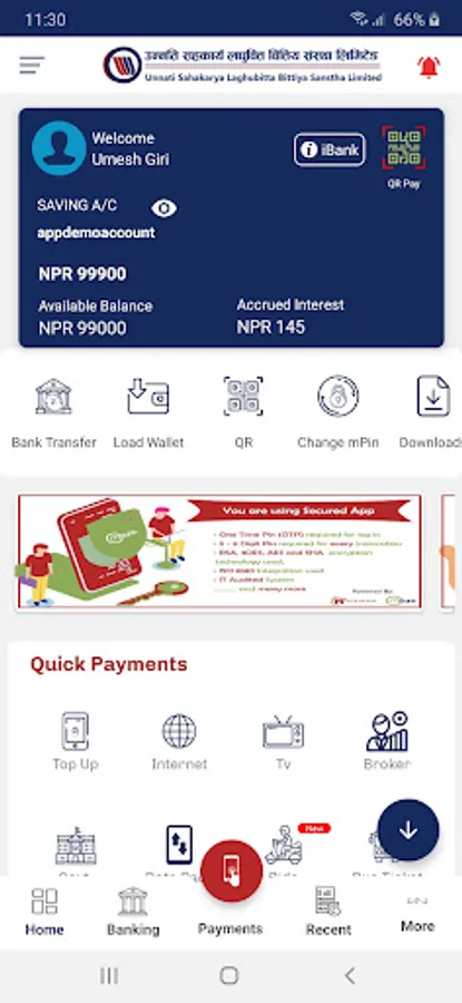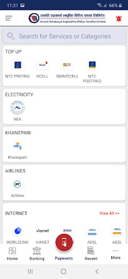 Unnati Smart App is an official mobile application of Unnati Sahakarya Laghubitta Bitiya Sanstha Limited. which facilitates the user for various utility payment and mobile recharge/ topup for different telecom service provider like Nepal telecom, Ncell, CDMA as well as mobile banking features.