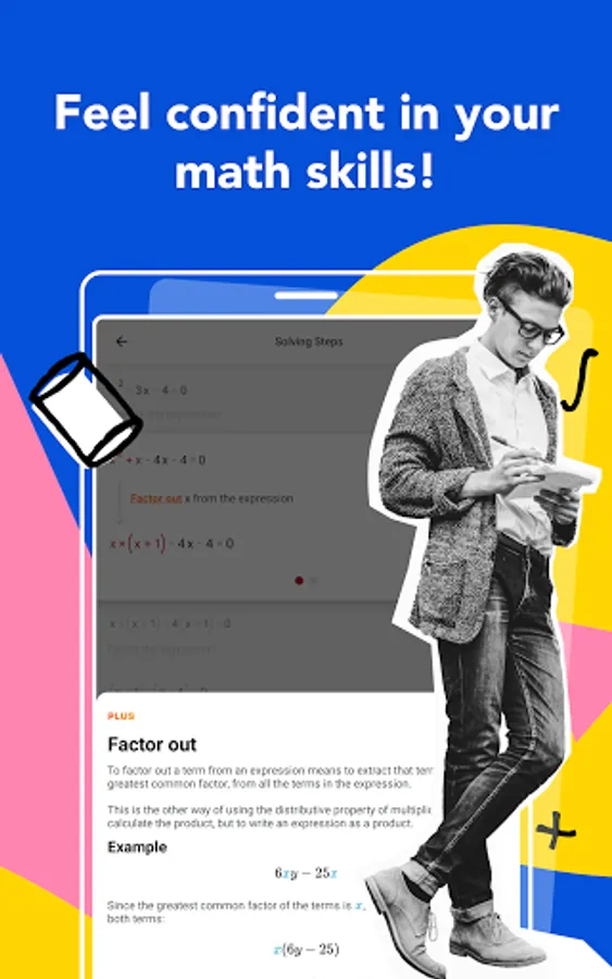 Basic solution steps and explanations are totally FREE, but if you’re ready for a brand new world of learning, Photomath Plus gives you access to: